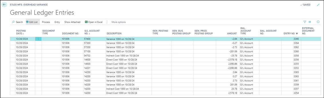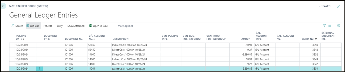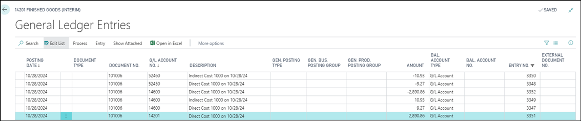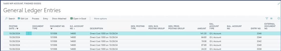 G/L Entry: G/L Entries are posted below G/L Accounts.